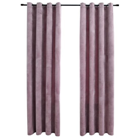 Vidaxl Zatemnitvene zavese z obročki 2 kosa žamet roza 140x175 cm