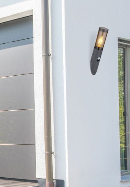 Zunanja stenska svetilka s senzorjem Globo Boston 3157SAS iz nerjavečega jekla v antracit barvi. Razred zaščite IP44. Celoten opis