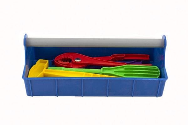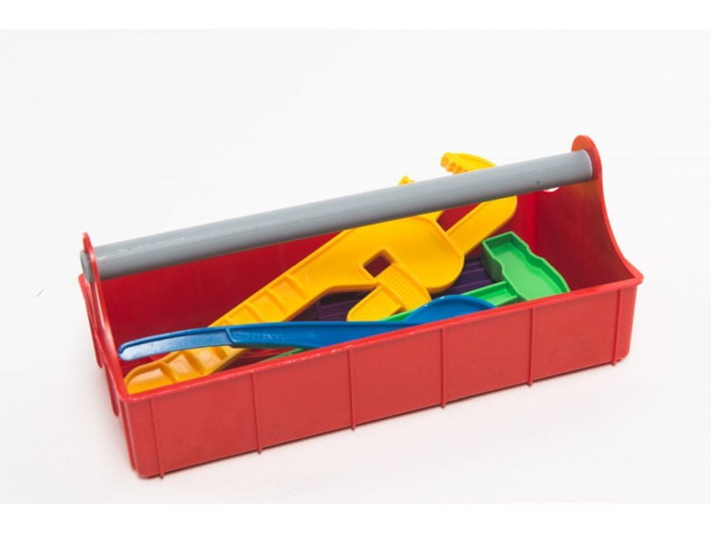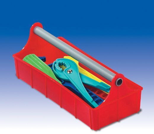 Naročje v škatli z orodjem – igre za serviserje in naredi sam so med najbolj priljubljenimi igrami za fante. Fantje radi opazujejo svoje očete pri delu na vrtu ali pri popravilih doma. Očetje so vzorniki svojim mladim sinovom. Igre naredi sam in popravljalec zabavajo vsakega malega fanta. Svojemu kupite komplet kul plastičnih orodij v kovčku za prenašanje. Komplet vključuje transportno škatlo in 5 kosov orodja. Dimenzije škatle: 24 × 9,5 × 11 cm. Primeren za otroke od 3. leta starosti. Na voljo v rdeči in modri barvi.