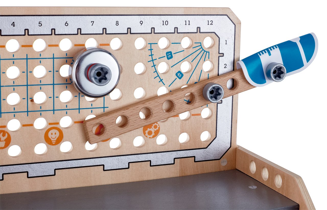 To je delovni ponk za prave znanstvenike in domače mojstre! Vesel barvit dizajn. Vsak mali mojster ali znanstvenik se bo počutil kot v pravi delavnici! Igrača razvija fino motoriko, spodbuja domišljijo, spretnost in koordinacijo rok in oči. Naj vas navdihuje 10 poskusov ali pa ustvarjajte po lastni domišljiji. Igrača je sestavljena iz 58 delov. Narejena je iz visokokakovostnega in trpežnega materiala. Starost: 4+. Velikost: 36,6 × 44,5 × 24,5 cm. Video: https: //www.youtube.com/watch?v=bnLN-h214Cc