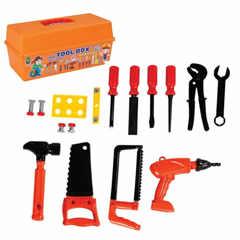 Orodjarna z orodji za manjše domače mojstre. Vsebuje 25 različnih orodij – žago, izvijač, vrtalnik, ključ, ključ in drugo.