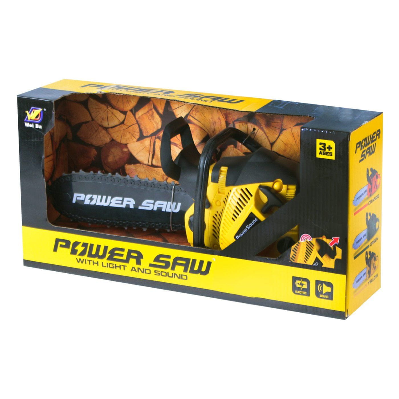 Plastična žaga na baterije, ki proizvaja pravi zvok. Celoten opis