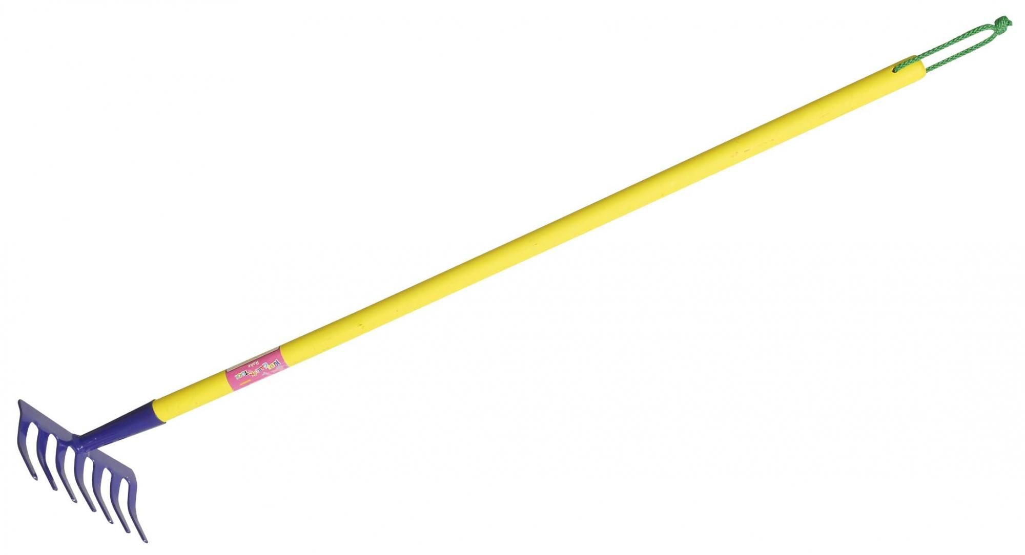 Otroške grabljice z daljšim ročajem, ki imajo na koncu še priročno vrvico za obešanje.