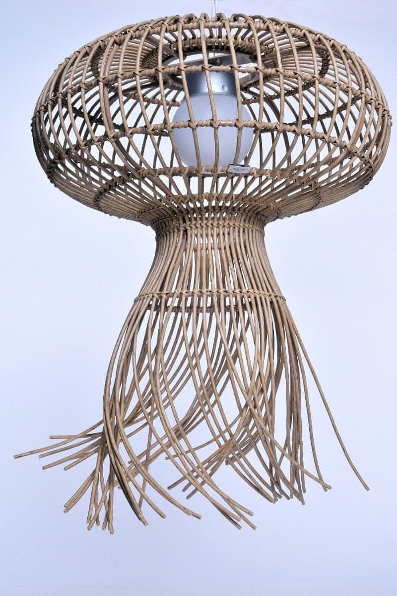 Vrtna viseča svetilka Meduza iz kolekcije Yucatan z ovalnim senčnikom z obrobami v naravni barvi. Ekoratan je polietilensko vlakno z visoko gostoto, ki je zelo odporno na neugodne vremenske razmere, kot sta dež in UV-žarčenje. Ekoratan je vodoodporen, zato je svetilko enostavno čistiti in vzdrževati. Svetilka je kot nalašč za poletne vrtne aranžmaje in notranjost. Obesek je primeren za žarnice z energijskimi razredi: A++, A+, A, B, C, D, E. Priporočena žarnica 1 x E 27, max. 60W. Kolekcija Yucatan je odgovor na pričakovanja ljubiteljev poletnih vrtnih aranžmajev. Vrtno pohištvo in dodatki v beli in sivi barvi so kombinacija sodobnega oblikovanja s pridihom elegance. Vrtno pohištvo, spleteno iz ekoratana, je trpežen in izjemno estetski dodatek, materiali, iz katerih je izdelano, pa zagotavljajo dolgoletno udobje.