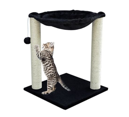 STOJEČA Viseča mreža, MAČJE PRASKANJE 50CM, ČRNA Mačja viseča mreža je odlična ideja kot ležišče ali ležišče za vašega mačjega mladiča. Zahvaljujoč dvema stebričkoma iz sisala se lahko vaš ljubljenček igra, praska in počiva v enem. Kompaktno in večnamensko drevesce bo vašim mačjim mladičem polepšalo čas in jim ne bo treba brusiti krempljev doma na kavču.   Lastnosti izdelka: • Stabil (velika platforma) • Igrača; pompon • Stebrički oviti s sisalom • Visokokakovostni materiali in izdelava • Enostavna in hitra montaža Tehnični podatki: Material: MDF plošča, pliš, sisal Višina:    50cm Število nivojev: 1 Mere podnožja: 40×40cm Barva: črna   Priloženo: 1× mačji praskalnik