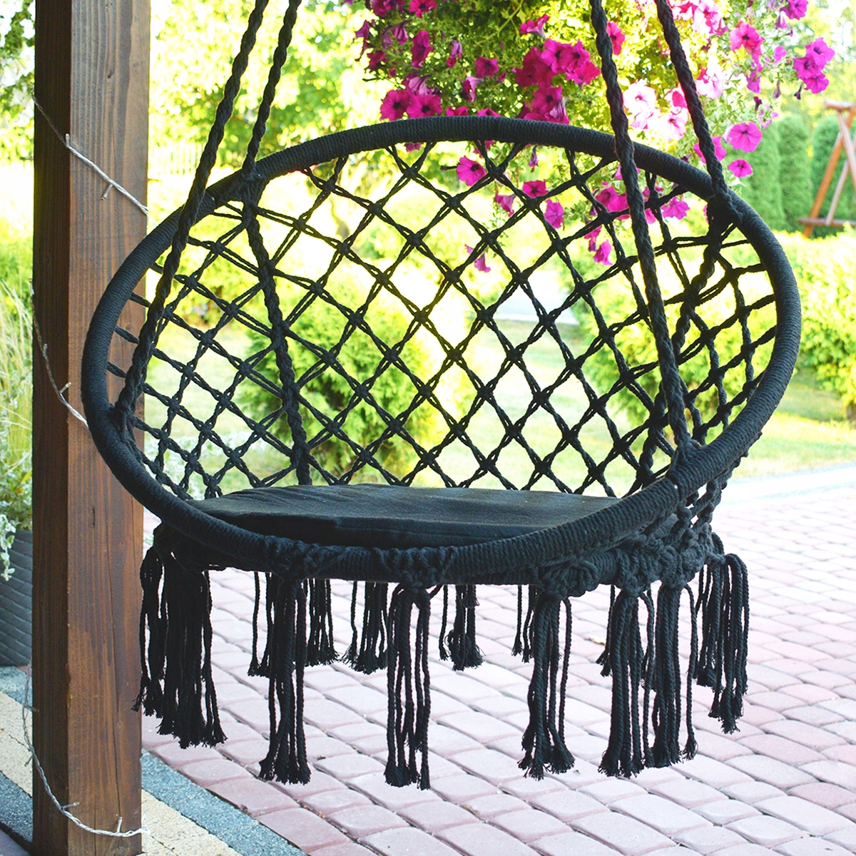 shumee Črna makrame gugalnica z blazino