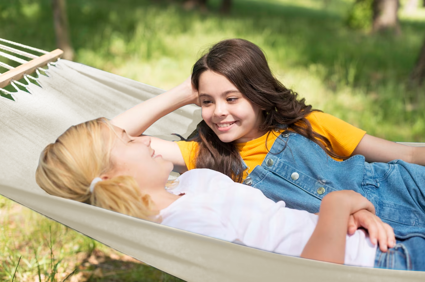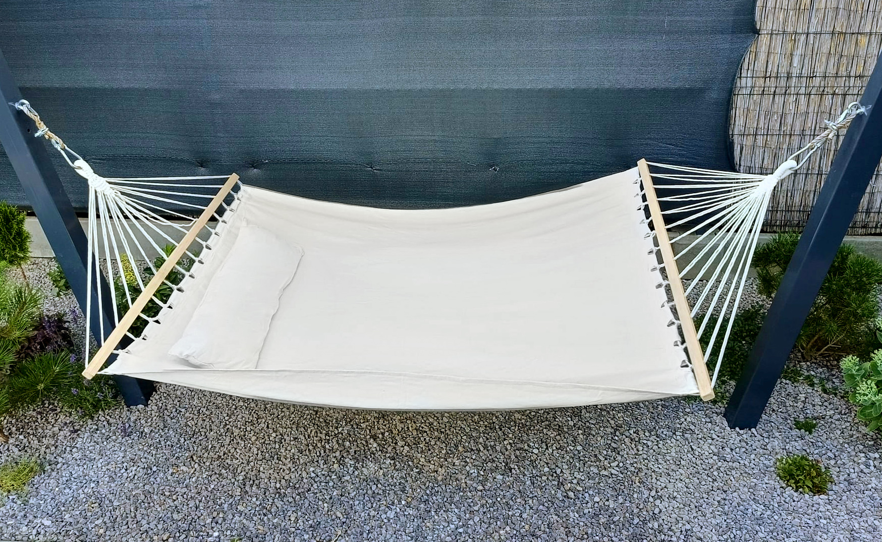zagotavlja udoben prostor za sprostitev dveh. Debele pletene vrvi in trdna luknja za pritrditev