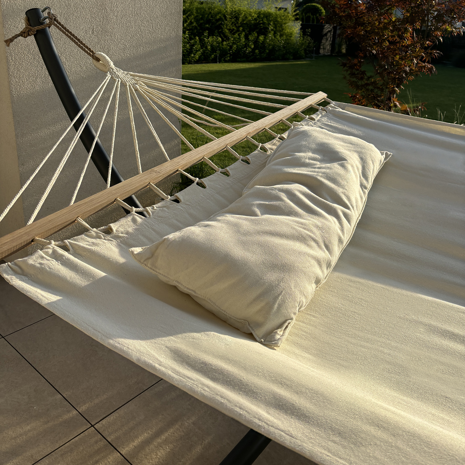 ☘️ VELIKA VRTNA VISEČA MREŽA ZA DVE OSEBI 200 × 150 cm Z BOHO XXL PREČKAMI + BLAZINA