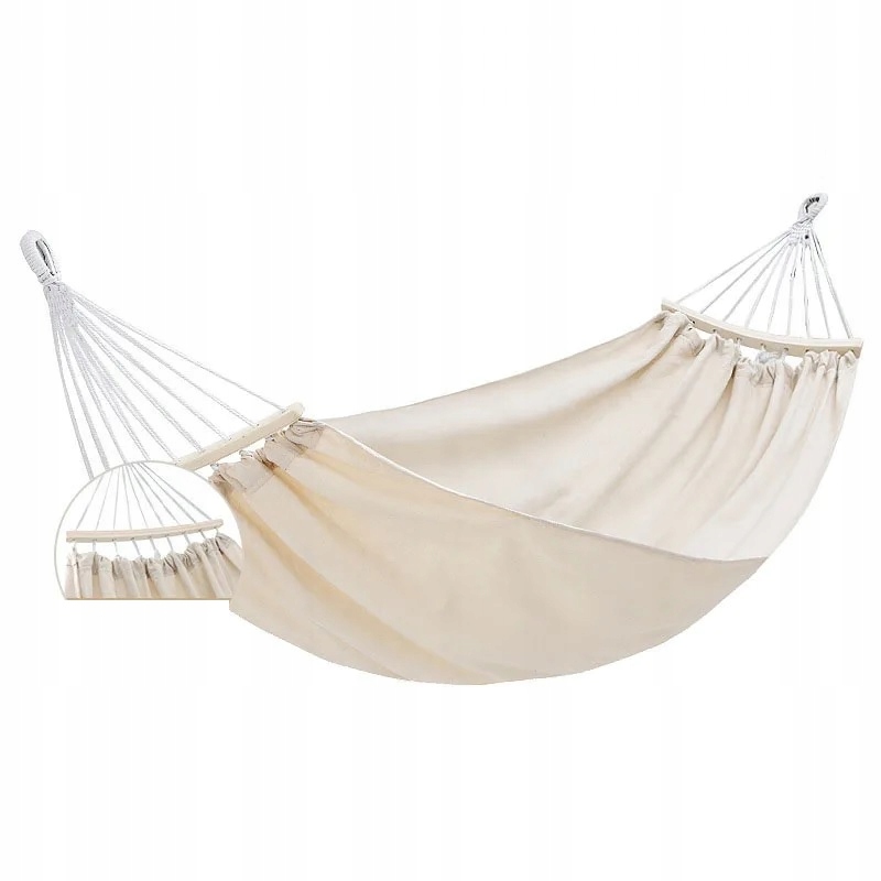 Viseča mreža je izdelana iz bombaža z majhno količino poliestra, zaradi česar je prijetna na dotik in trpežna.