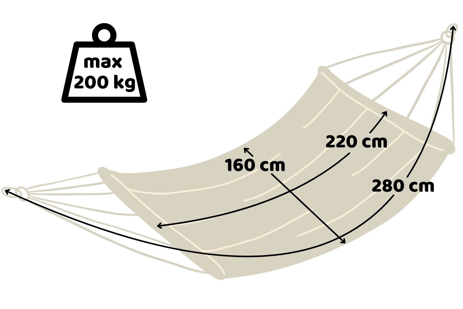 Viseča mreža ima največjo nosilnost do 200 kg, kar omogoča hkratno sprostitev dveh oseb!