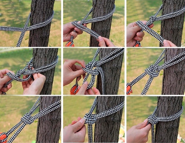Zelo enostavna montaža, le naučite se, kako jo preprosto in varno zavezati, kot je prikazano na sliki na levi