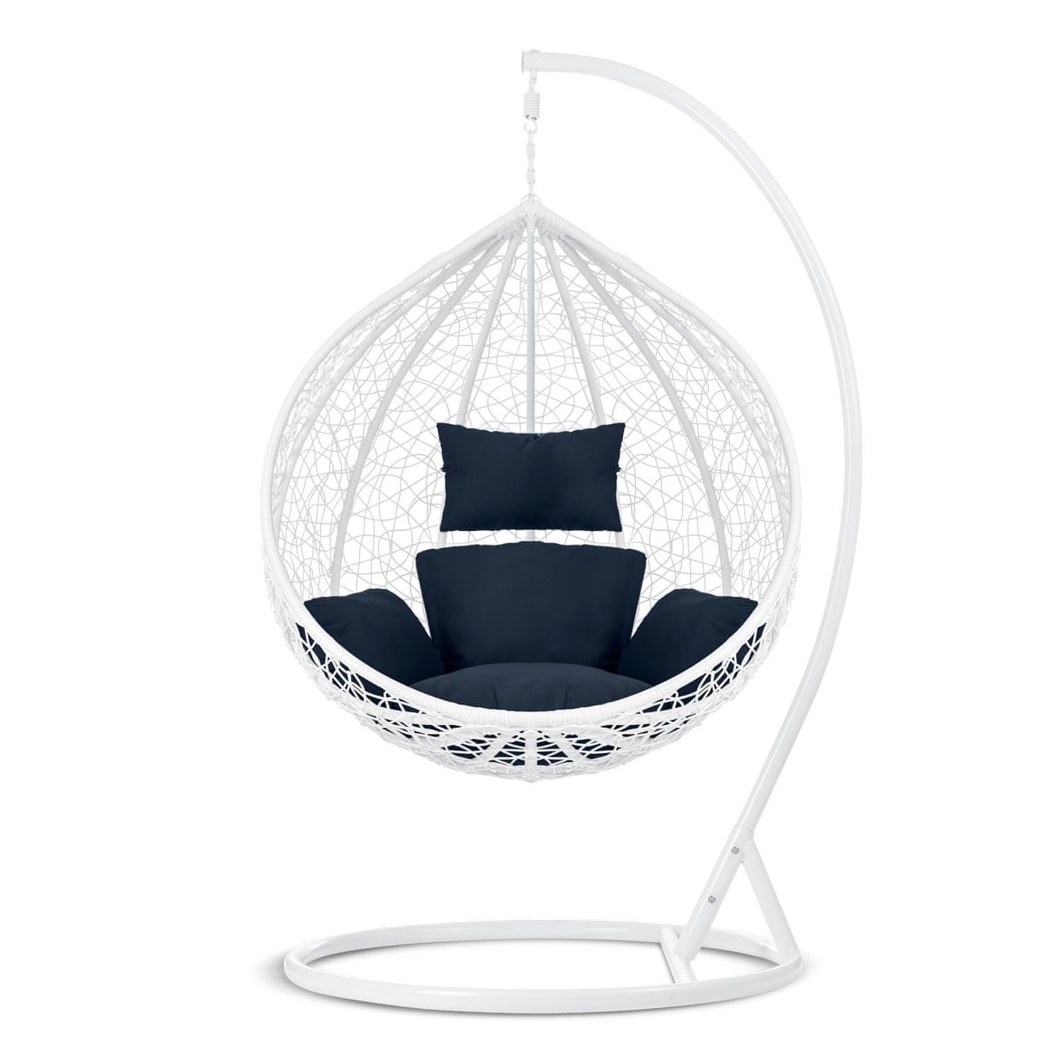 shumee Viseči gugalni stol Havana bela + temno modre blazine