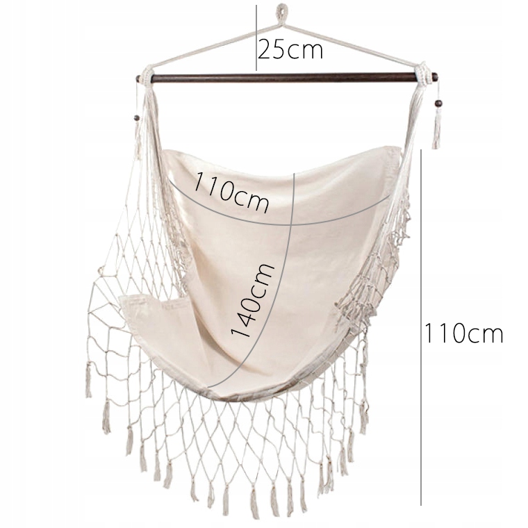 ♦️ Premišljena zasnova : Fotelj je dolg 110 cm (brez pritrdilnih vrvi), kar vam omogoča prosto iztegovanje in popolno sprostitev. Širina blaga je približno 110 cm, dolžina blaga pa kar 140 cm, kar vam daje prostor za udobno sedenje.