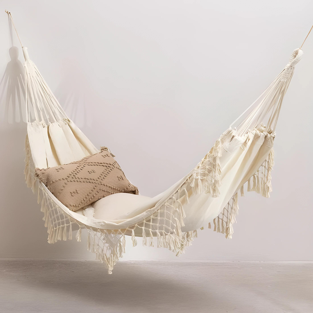 ✨ Nevtralne barve poskrbijo, da je viseča mreža videti čudovito v vsakem okolju.
