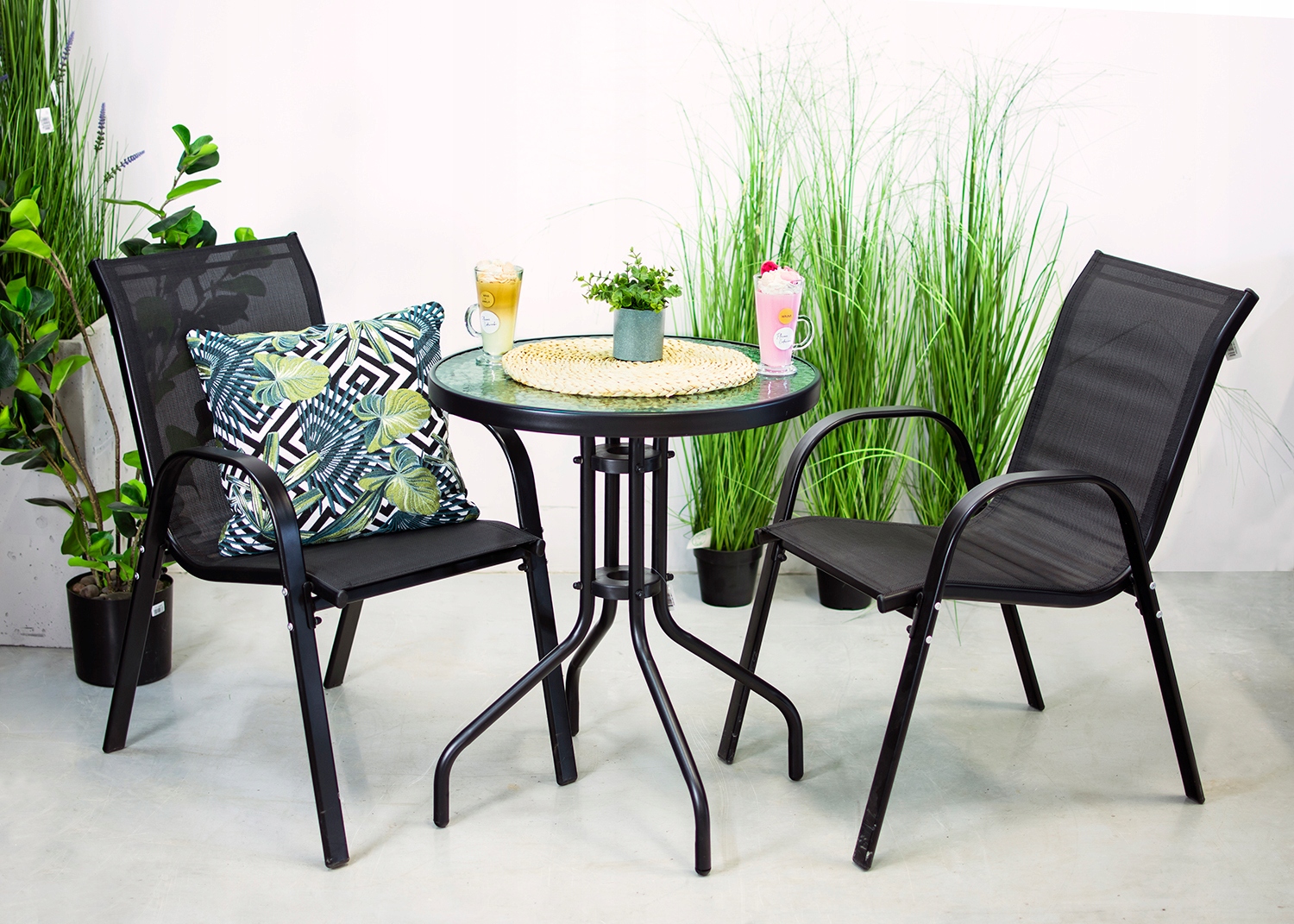 Komplet pohištva FIESTA je sestavljen iz mize in dveh udobnih stolov.