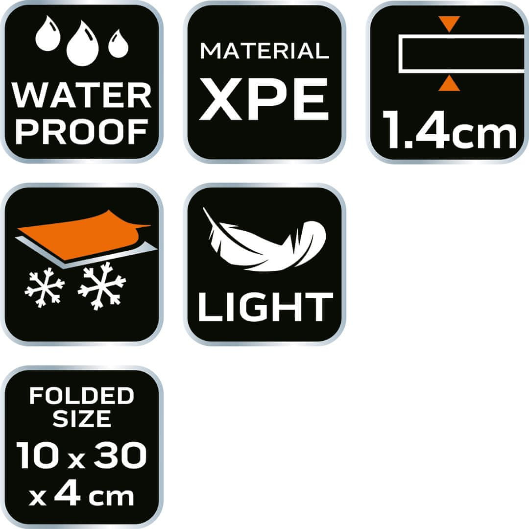 Zložljiva podloga za sedež 63–160 podjetja NEO TOOLS je uporaben pripomoček iz pene XPE, ki v razgrnjenem stanju meri 40 × 30 × 1,4 cm, v zloženem pa 30 × 10 × 5 cm. Podloga je izjemno lahka (60 g), vodoodporna in trpežna. Zaradi kompaktne velikosti in nizke teže jo je enostavno prenašati. Zagotavlja toplotno izolacijo od tal, zaradi česar je primerna za številne situacije – tako med delom kot v prostem času. Zložljiva podloga za sedež NEO TOOLS ščiti kolena in zagotavlja udobno sedenje na različnih površinah.