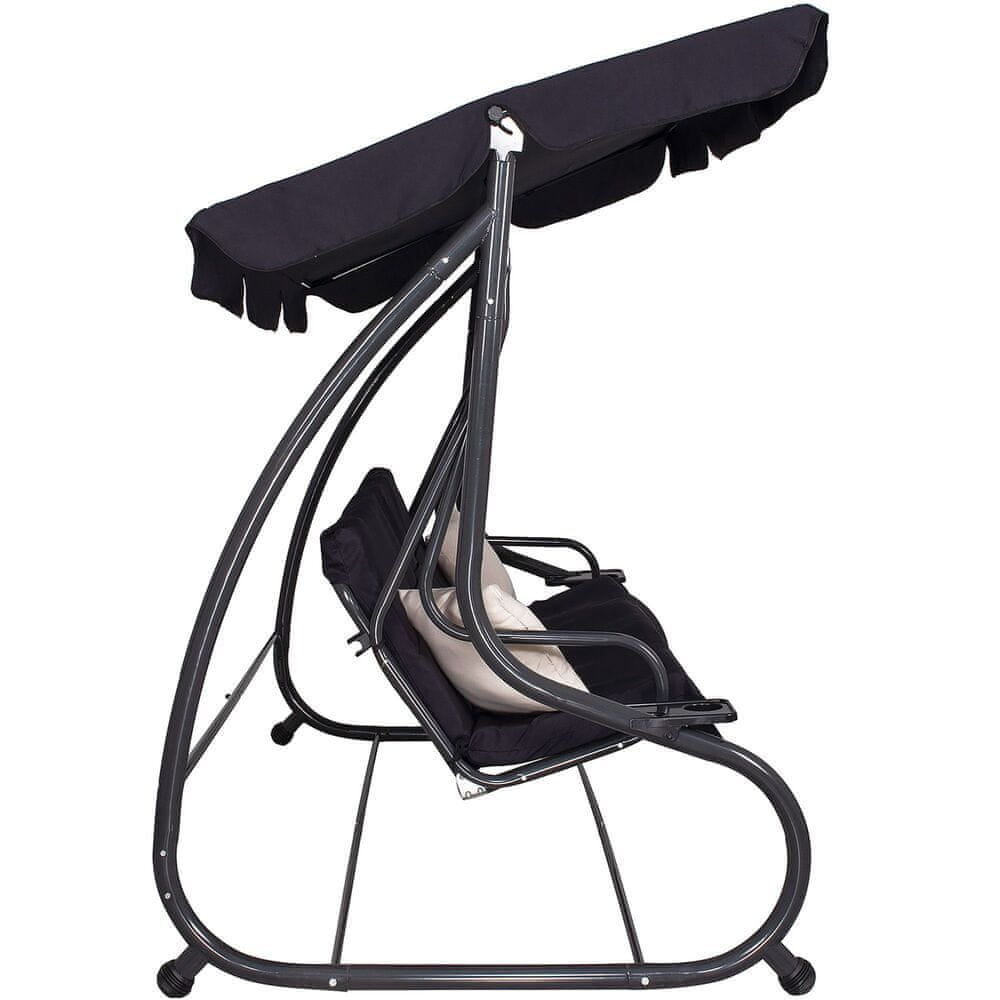 Springos Vrtna gugalnica SPRINGOS FLORIDA, 4-osebna, črna, z oblazinjenjem in držali za pijačo