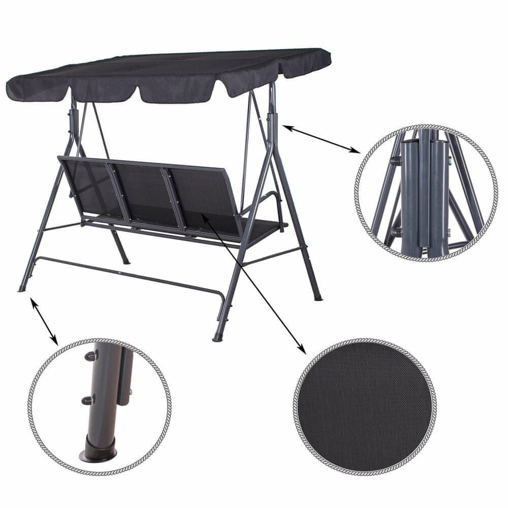 Springos Vrtna Gugalnica SPRINGOS PALERMO za 3 osebe, Črna, Kovinska Konstrukcija