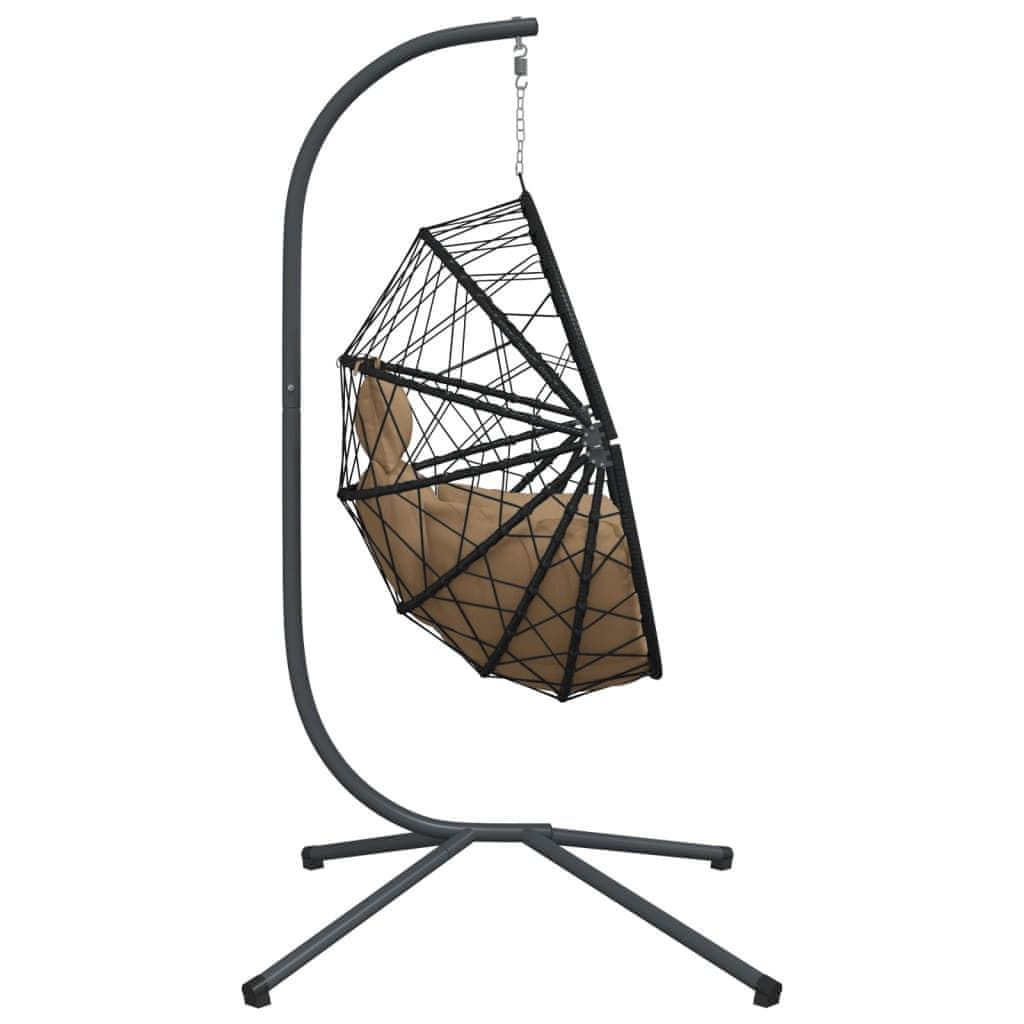 Vidaxl Viseči stol jajček s stojalom taupe ratan in jeklo
