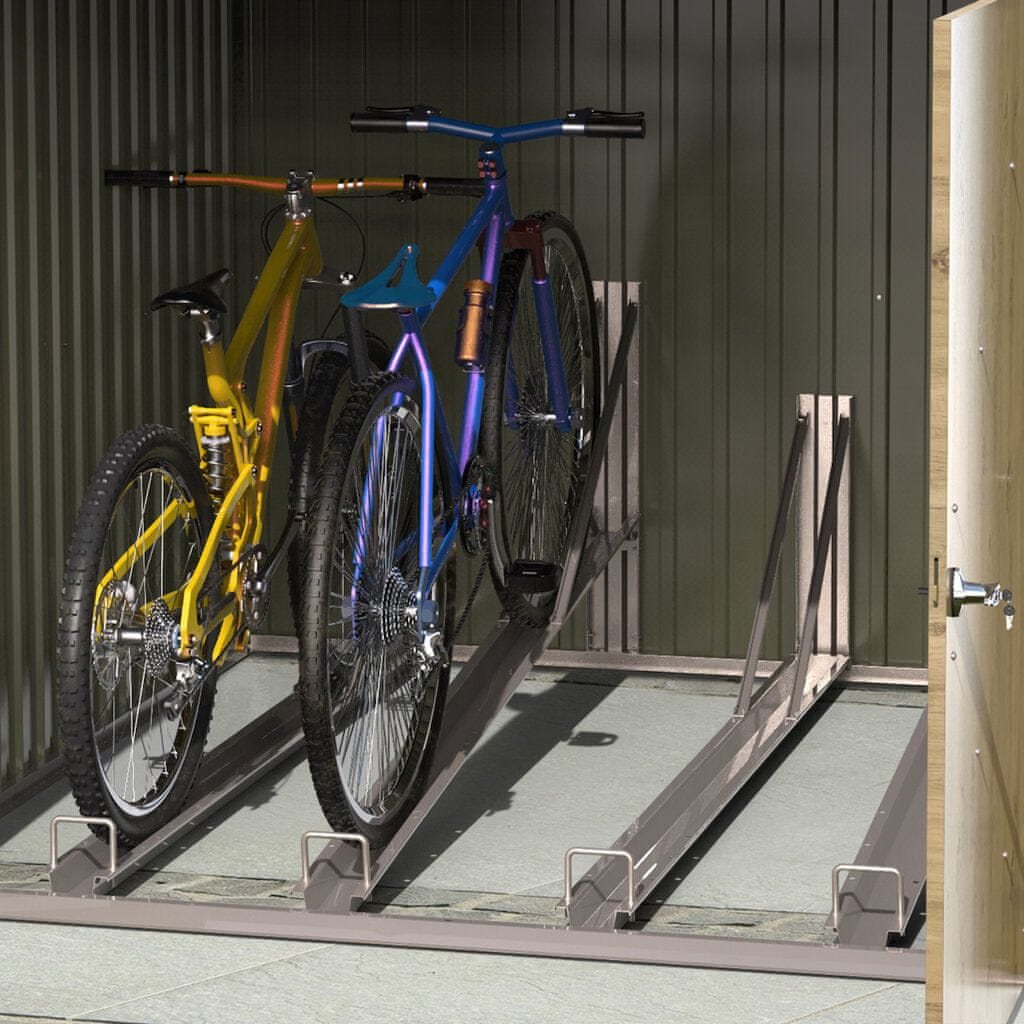 Škatla za shranjevanje koles je rešitev za vse, ki želijo svoja kolesa hraniti na varnem in suhem mestu. Zaradi uporabljenih materialov zavetje praktično ne potrebuje vzdrževanja. Zaradi tega ima zavetje 15-letno garancijo proti rji. Škatla za shranjevanje ponuja dovolj prostora za shranjevanje do štirih koles. Priročno shranjevanje in odstranjevanje koles zagotavljajo tirnice in široka dvojna vrata, ki jih je mogoče zakleniti. Zato pri odstranjevanju enega kolesa ni treba manipulirati z drugimi.