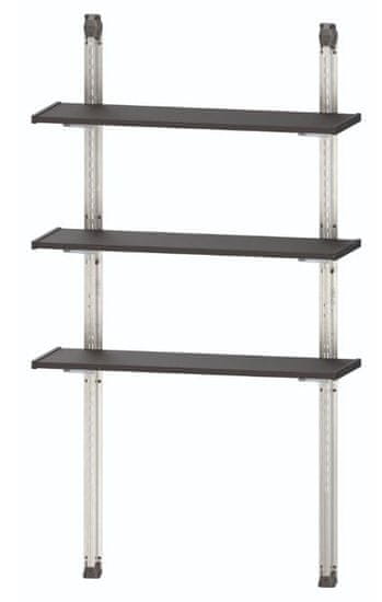Komplet regalov 100 podjetja KETER. Na tirnice se pritrdijo 3 jekleno ojačane police. Ena polica prenese do 30 kg tovora. Prilagodljivo shranjevanje na steni. Celoten opis