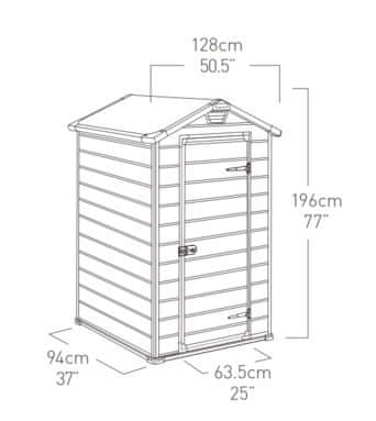 Plastična vrtna hiška, brez vzdrževanja Manor 4×3. Enostavna za montažo, možno zaklepanje, ne zavzema veliko prostorna, ponaša se s stabilno konstrukcijo. Tlorisne dimenzije: 128 × 94 cm. Celoten opis