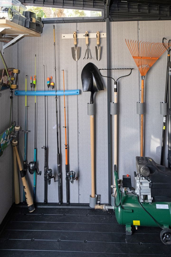 -v notranjosti dovolj prostora za stojala in police za orodje ter za shranjevanje vrtnarske opreme in pripomočkov