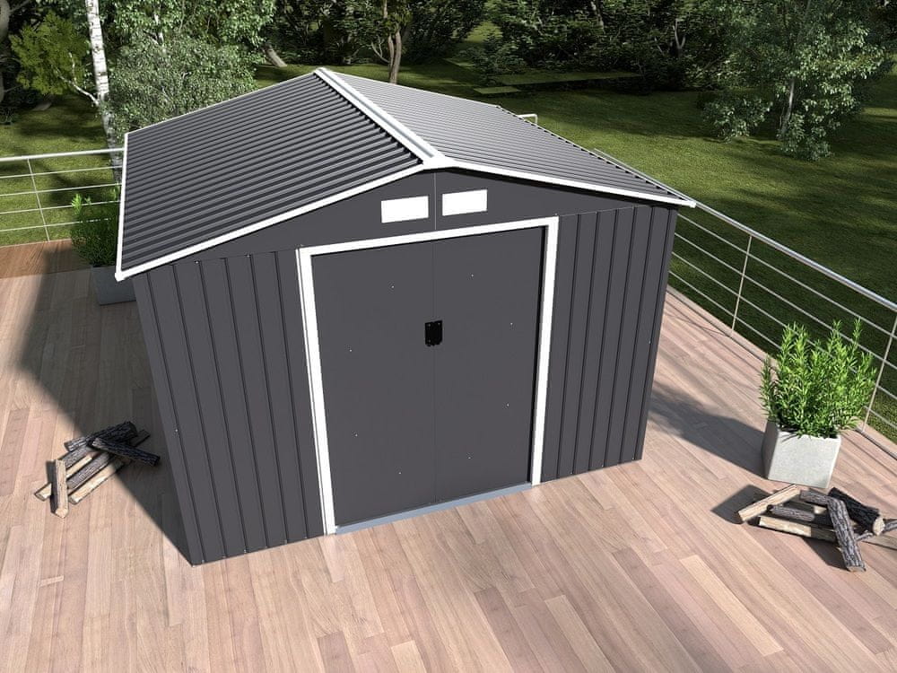 Vrtna hišica ARCHER se lahko uporablja za shranjevanje, na primer vrtnega orodja, koles, kosilnic, bazenskih dodatkov itd. Vrtna hišica v modernem dizajnu se prilega vsakemu vrtu. Hiška ima dvojna drsna vrata, tako da boste imeli do nje enostaven dostop. Dimenzije vrat: 96×162 cm. Izdelana iz visokokakovostnih vroče pocinkanih jeklenih pločevin debeline 0,25–0,30 mm in visokokakovostnega pocinkanega jeklenega okvirja debeline 0,5–0,8 mm. Največja snežna obremenitev strehe je 60 kg/m2. Jeklena, pocinkana konstrukcija z prezračevalnimi rešetkami. Tla niso del hišice. Hiška mora biti zgrajena na ravnem temelju (beton, ploščice, lesena tla). Hiška vključuje obodni okvir, ki ga s sidrnimi vijaki pritrdite na ravno podlago. V paketu je priložen tudi sidrni material.