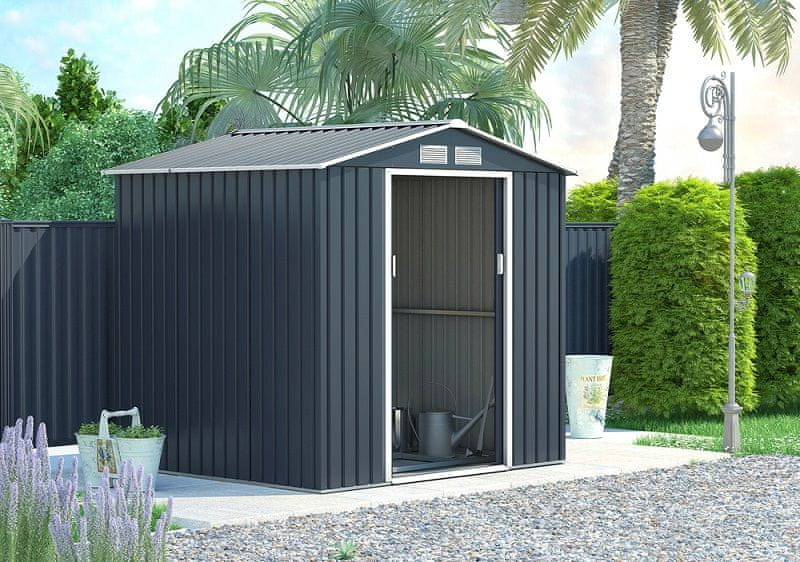 • Kompaktna, kakovostna in prostorna vrtna hiška, v katero lahko pospravite kosilnico, samokolnico in ostalo vrtno orodje.
