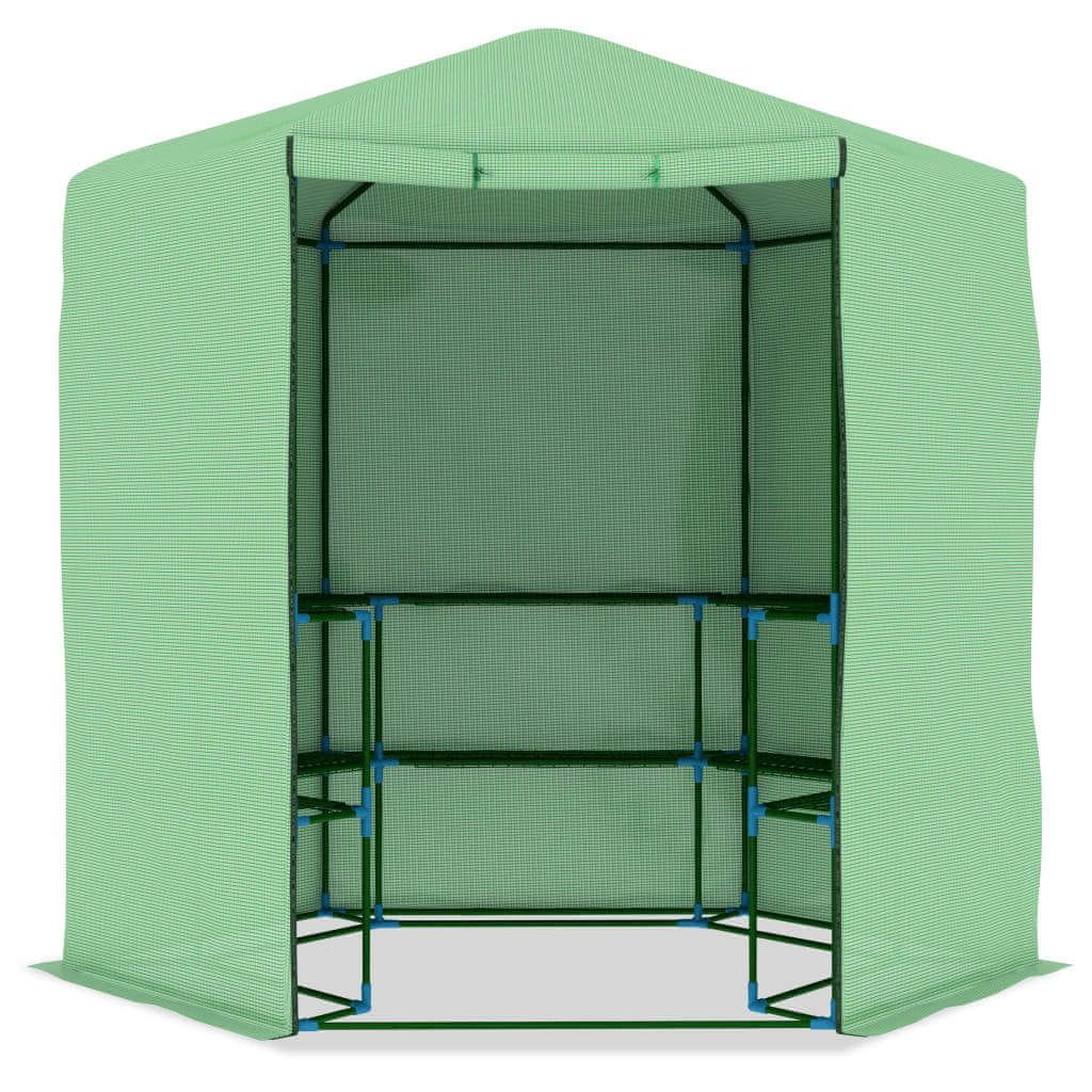 Ta rastlinjak bo odlična izbira za zaščito vaših rastlin pred vetrom, dežjem, soncem in pticami. Rastlinjak je izdelan iz 170 g/m² PE mrežaste tkanine, ki je za 25 % težja od standardne mrežaste tkanine konkurenčnih izdelkov. Ta rastlinjak ima za dodatno stabilnost močan okvir iz nerjavečega jekla s prašnim premazom. Rastlinjak je opremljen s policami za urejanje in razstavljanje rastlin; ima tudi vrata za dobro prezračevanje in enostaven dostop.