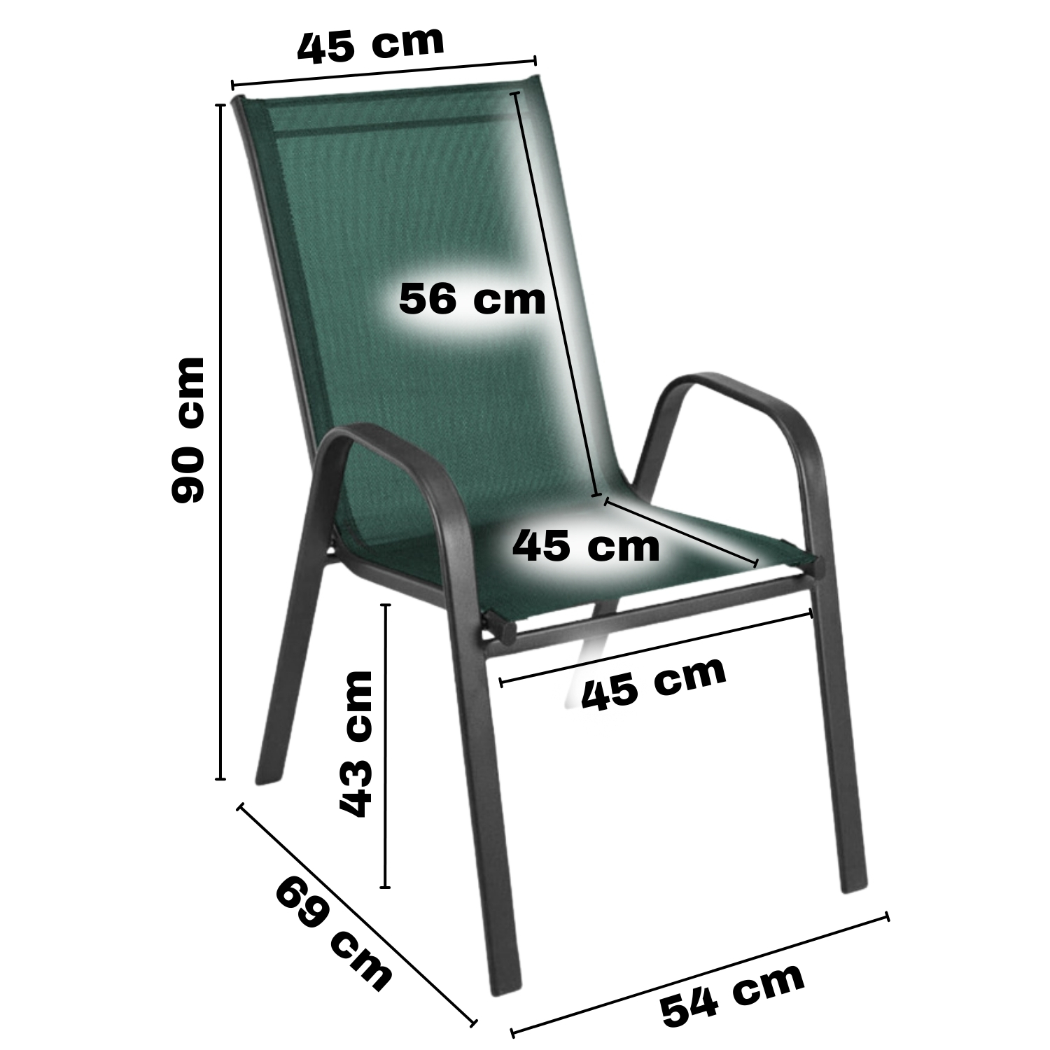 - Dimenzije sedeža: 45 × 45 cm