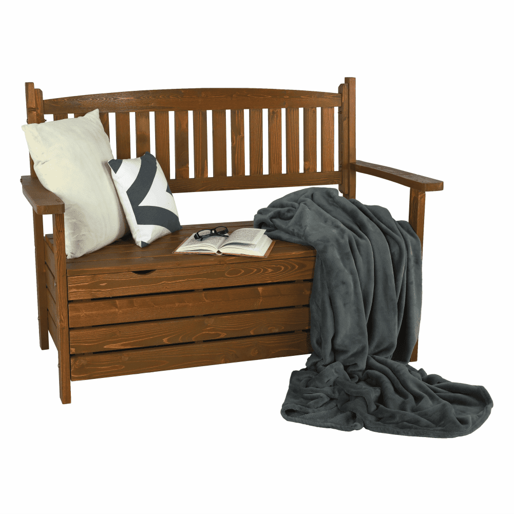Material: les Barva: rjava Dimenzije (ŠxVxV): 123,5×56×88 cm Višina sedeža: 40 cm Globina sedeža: 47 cm Širina sedeža: 108,5 cm S prostorom za shranjevanje Dobavi se v razstavljenem stanju. Celoten opis
