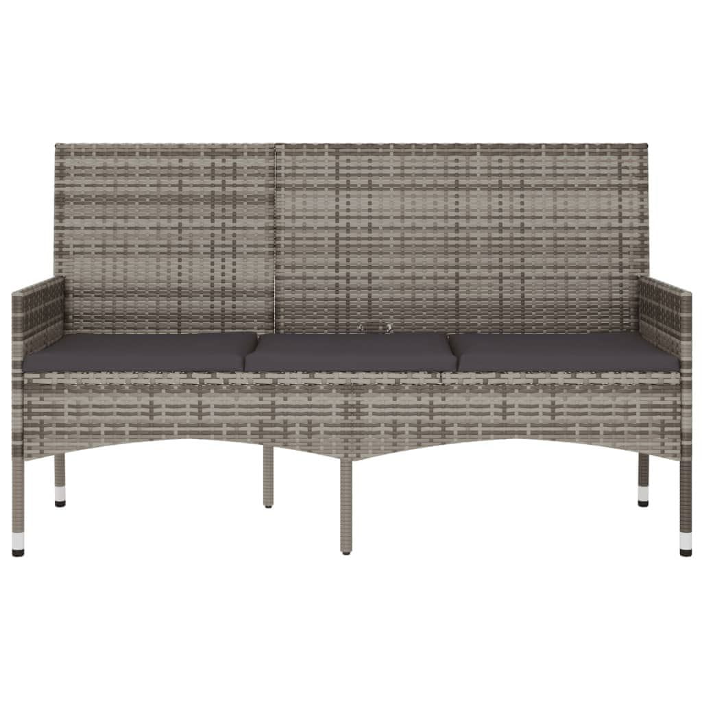 Vidaxl Vrtna klop s tremi sedišči z blazinami siv poli ratan