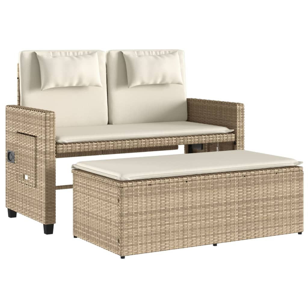 Vidaxl Vrtna klop z blazinami bež poli ratan