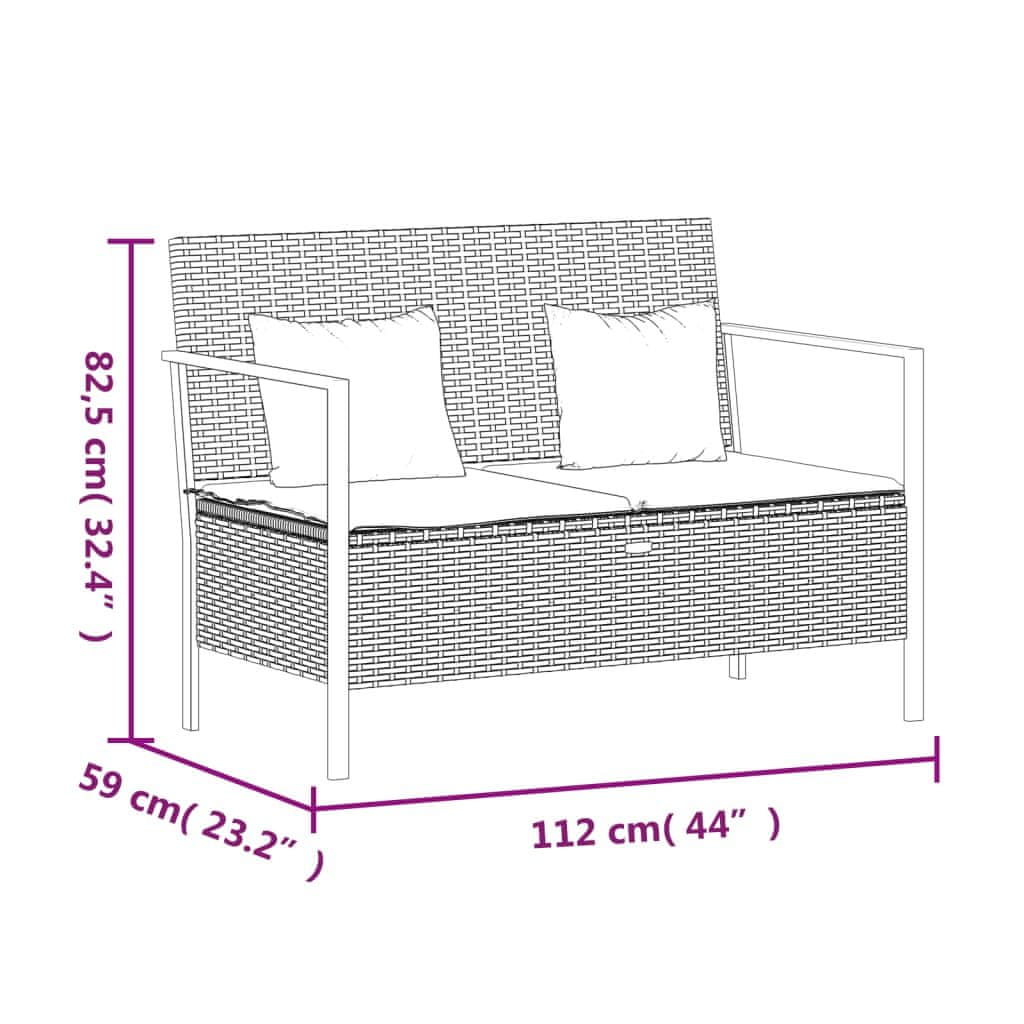 Vidaxl Vrtna klop z dvema sediščema z blazinami siv poli ratan