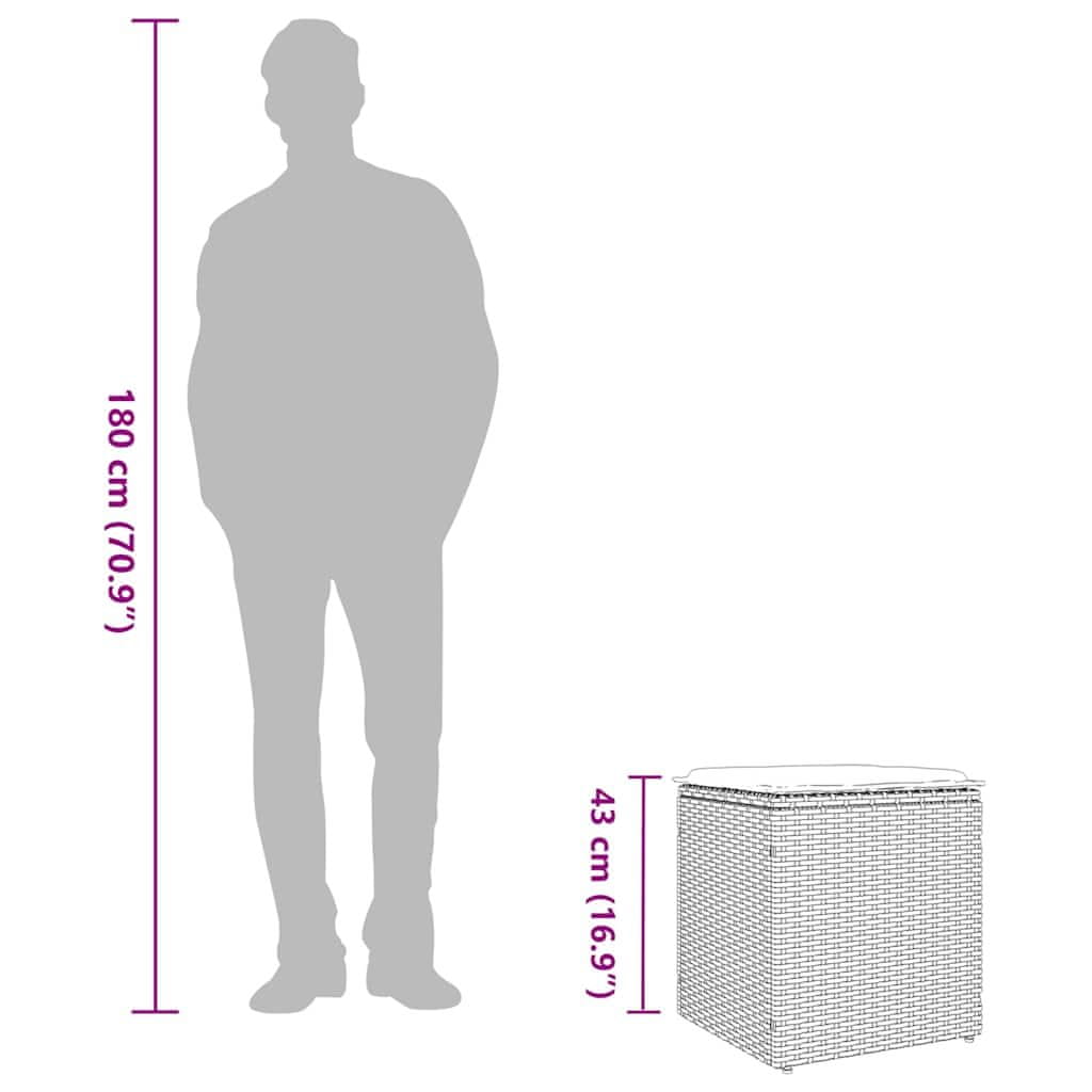 Vidaxl Vrtni stolčki z blazinami 2 kosa Siva 40x40x43 cm poli ratan