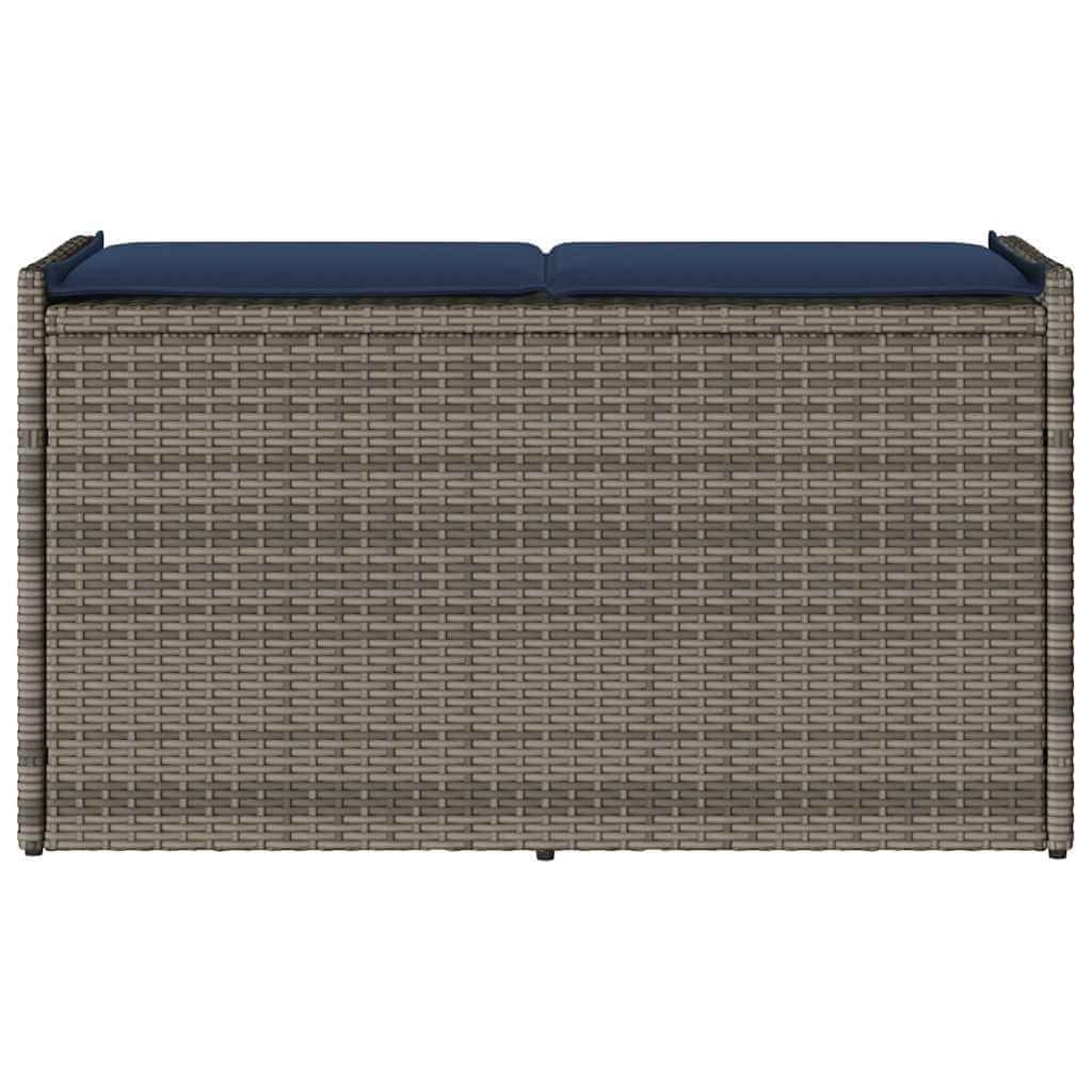 Vidaxl Zunanja klop za shranjevanje z blazino Grey 100 cm poli ratan