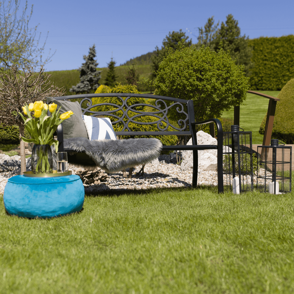 Vrtna klop VENDA, črna jeklena, 127 × 60 × 85 cm, nosilnost 170 kg Celoten opis