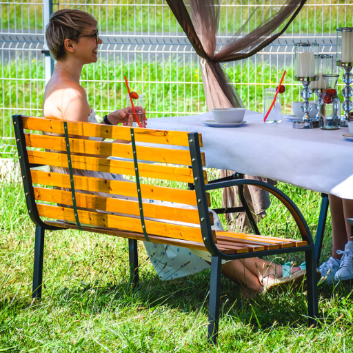 Ne samo, da izgleda odlično, ampak bo tudi zdržala leta! Njen kovinski okvir, prevlečen z dvojno plastjo prašnega premaza , se ne boji dežja, snega ali žgočega sonca. Cedrov les je bil skrbno zaščiten z lakom, zaradi česar je odporen na vlago in UV-sevanje. Ali to pomeni, da vam ni treba skrbeti za njegovo nego? Točno tako! Minimalen trud, maksimalen učinek – to je čarovnija dobro izdelanega vrtnega pohištva. ? ☘️ IDEALNO ZA TERASO IN VRT