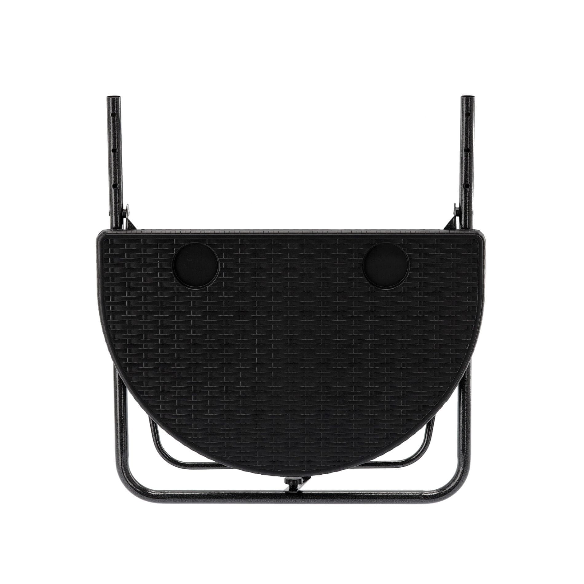 Miza je izdelana iz trpežnega materiala, ki je zasnovan tako, da prenese tudi zahtevne pogoje zunanjega okolja. Črna barva daje mizi eleganten videz, ki se popolnoma zlije z okolico vašega balkona.