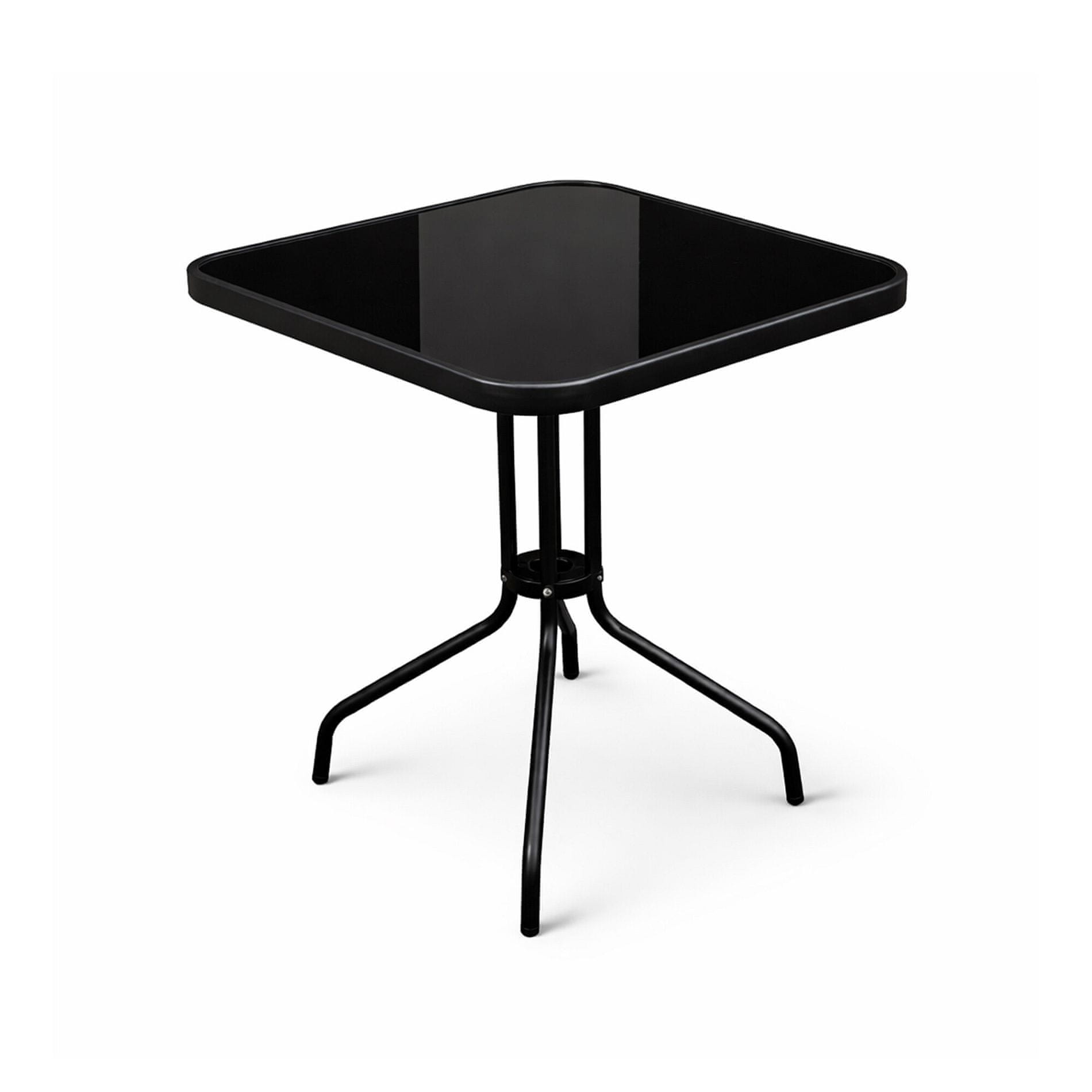 Vrtna miza BISTRO s trdnim kovinskim okvirjem in stekleno ploščo v sodobnem dizajnu, primerna za vrtove, terase, kavarne, paviljone, balkone ali plaže. Celoten opis