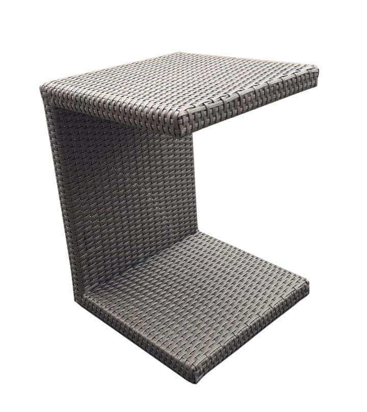 Univerzalna stranska mizica v obliki črke U za različne vrste ležalnikov, ki jo lahko postavite na bok (glej sliko) in udobno potisnete pod ležalnik ali pa jo klasično postavite na dve nogi in uporabljate kot tipično mizo.