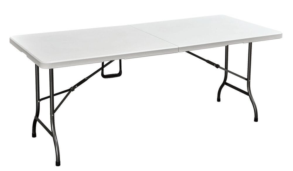 Zložljiva miza iz zelo močnega materiala HDPE z jekleno konstrukcijo. Konstrukcija je obdelana s kladivasto barvo. Miza je primerna za uporabo v zaprtih prostorih in na prostem. Idealno za gostinske dejavnosti in kampiranje. Zahvaljujoč možnosti zlaganja je mizo zelo enostavno shraniti – njene mere v zloženem stanju so 90×75×8 cm. Miza je opremljena s praktično zanko za lažje prenašanje, ko je zložena. Za mizo lahko kupite gostinske stole ali klop in tako ustvarite zelo lep in predvsem praktičen set.