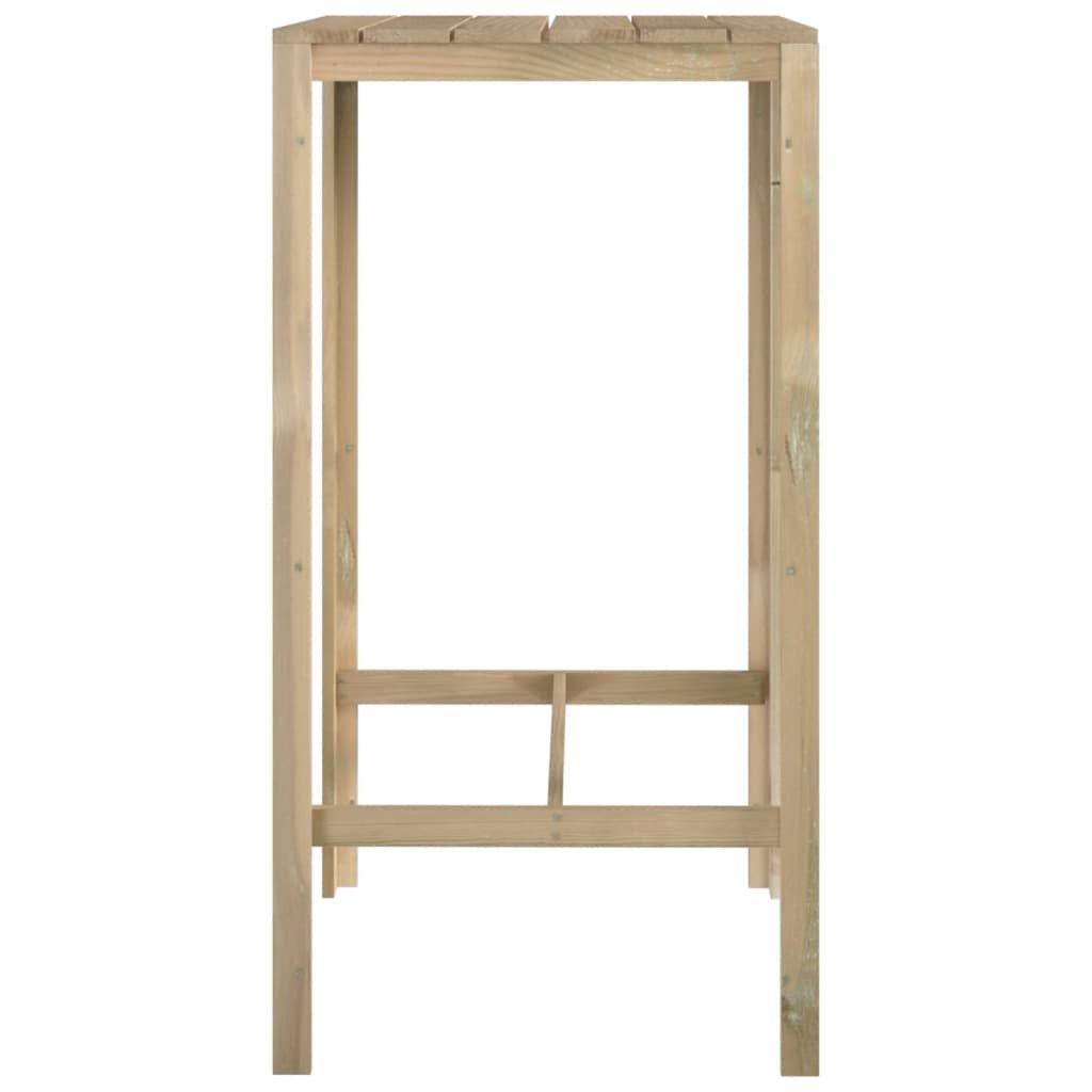 Izdelana je iz impregnirane borovine, zato je vzdržljiva in odporna na korozijo. Vrtna jedilna miza je primerna za uporabo na prostem. Elegantno zasnovana barska miza je brezčasen dodatek za vaš vrt. Lahko se uporablja tudi v notranjih prostorih.