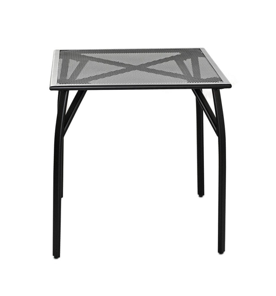 Kovinska vrtna miza s kvadratno žično ploščo. Odlično se poda k vsem vrstam kovinskega vrtnega pohištva. Enostavna je za vzdrževanje in pranje. Miza je izdelana iz ekspandirane kovine. Gre za kovinsko rešetko, kjer se pločevina med proizvodnjo reže in razteza, kar ustvari tipično rešetkasto zasnovo. Zahvaljujoč temu materialu je trpežen in praktičen izdelek.