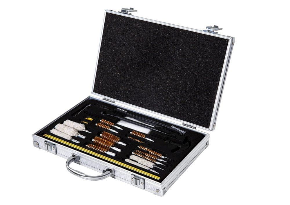 – Vsebuje podrobna navodila, ki bodo čiščenje vašega strelnega orožja olajšala in olajšala tako začetnikom kot izkušenim strelcem . Komplet v elegantnem etuiju – enostaven transport in shranjevanje