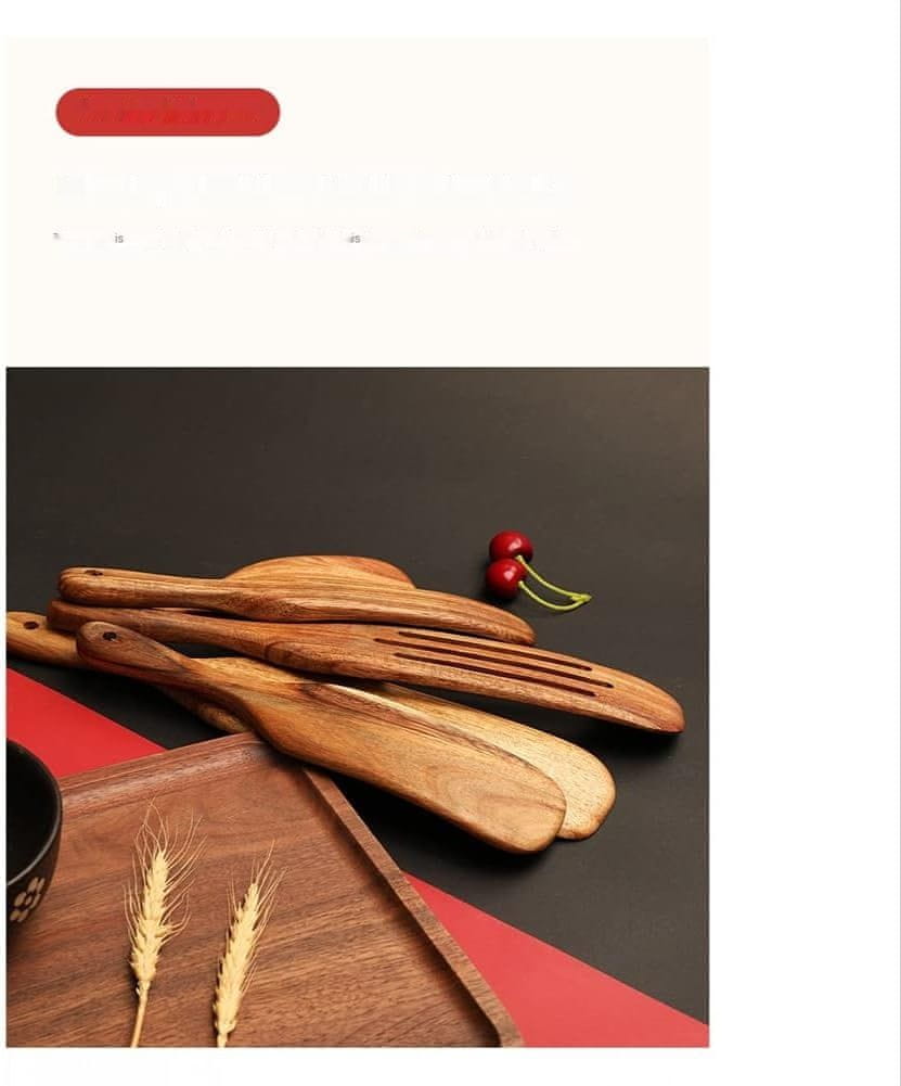 • Ta komplet vsebuje 5 lesenih pripomočkov, ki so idealni za mešanje jedi, kot so enolončnice. Ta eleganten lesen komplet je odličen za različna kuhinjska opravila: mešanje, obračanje, nabiranje, porcijo, sekljanje, mazanje, filtriranje in serviranje.
