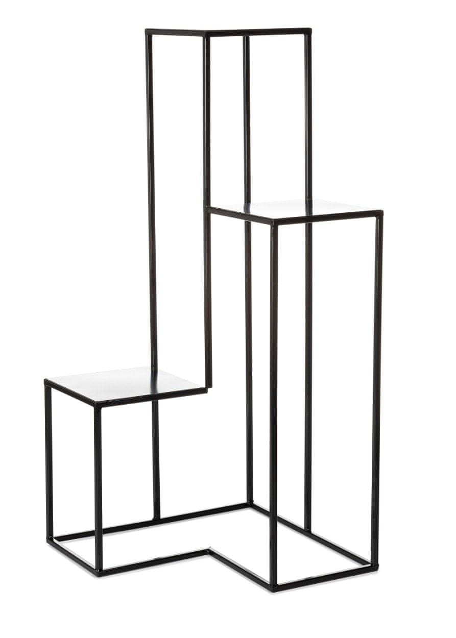 Moderno samostoječe stojalo za rastline v slogu podstrešja. Zahvaljujoč svoji preprostosti in edinstvenemu dizajnu bo to stojalo dopolnilo vsak stil stanovanja, sobe ali hiše. Zaradi robustne in vzdržljive konstrukcije je primeren tudi za uporabo na balkonu, vrtu, gazebu ali verandi. Stojalo je izdelano iz praškasto lakirane jeklene žice, zaradi česar je odporno na zvijanje. Vzdržljivo, lahko in stabilno stojalo je primerno za univerzalno uporabo doma ali na vrtu. Stojalo ima tri višine: 85 cm, 58 cm in 28 cm. Predstavljeno stojalo je črne barve. Izdelek ni odporen na vremenske vplive. Mere: Višina: 85/57/28 cm Širina: 40 cm Globina: 40 cm Pladenj: 20×20 cm Dimenzije se lahko razlikujejo za 2–3 cm zaradi ročne izdelave izdelka.