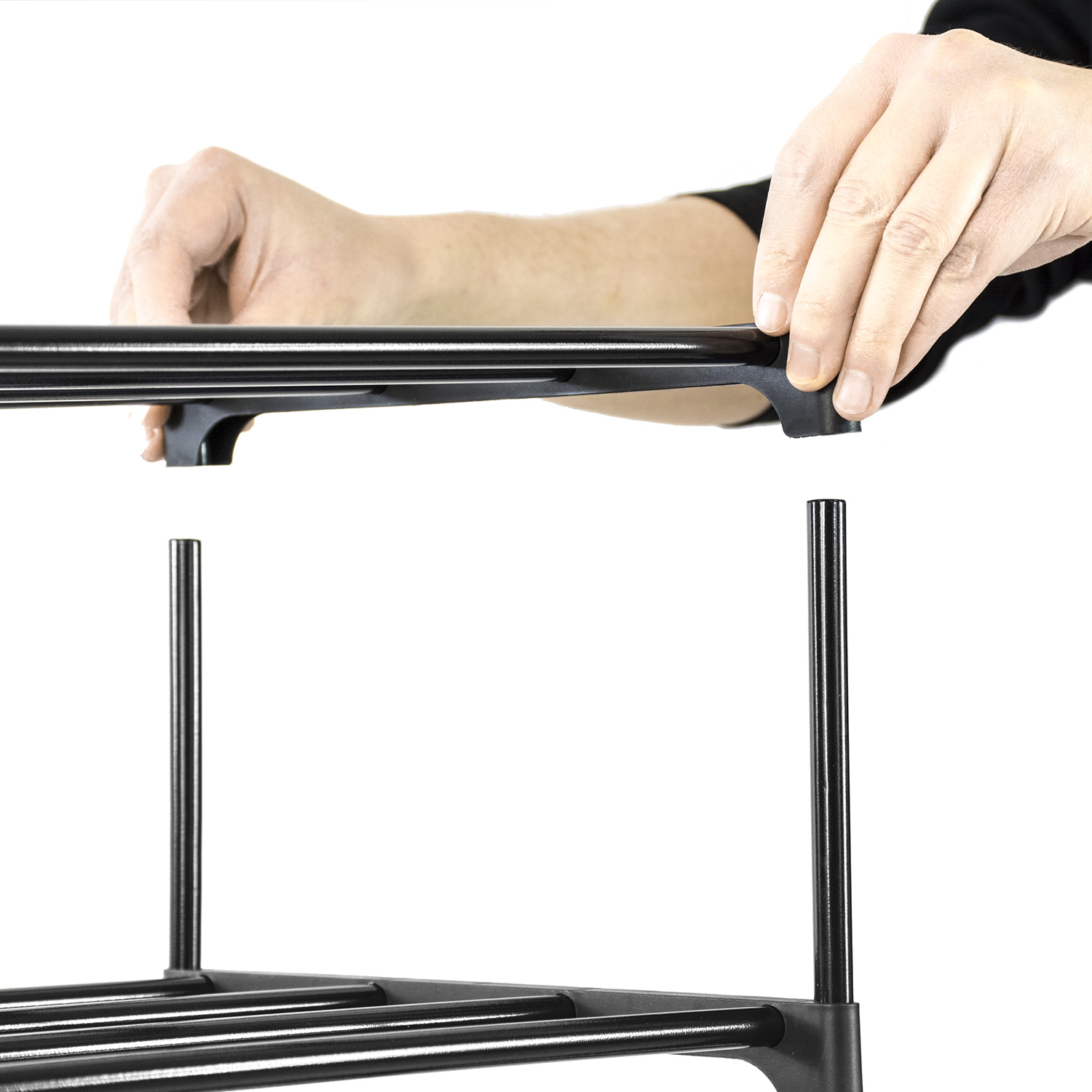 Zahvaljujoč uporabi lahkih materialov, kot so kovinske cevi in plastični pritrdilni elementi, je premikanje omarice izjemno enostavno. Izdelek je namenjen samostojni sestavi in njegova sestava traja le nekaj minut.