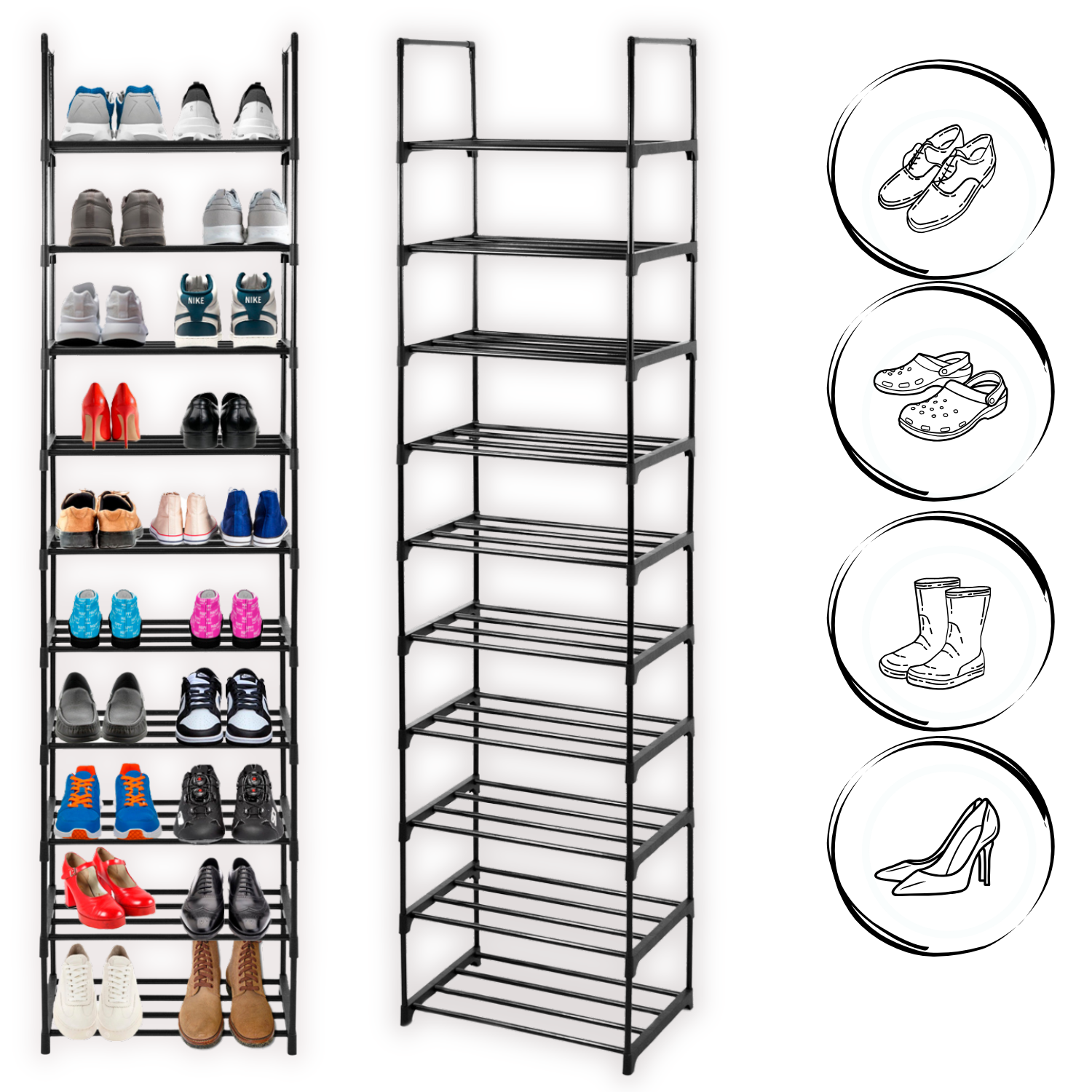 ☀️OZNA OMARA ZA ČEVLJE S KOVINSKO POLICO, ZLOŽLJIVO STOJALO ZA ČEVLJE, ČRNO OKVIRJE☀️